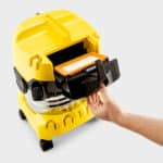 Сверхмощный и энергоэффективный с мощностью 1000 Вт: устройство пылесоса для сухой и влажной уборки WD 4 P V-20/5/22, всасывающий шланг и насадка для пола с зажимами оптимально подобраны для достижения наилучших результатов уборки. Влажная, сухая, мелкая или крупная грязь удаляется без замены фильтра. В комплект поставки устройства входит прочный и ударопрочный пластиковый контейнер емкостью 20 л, кабель длиной 5 м, всасывающий шланг длиной 2,2 м, насадка для пола с зажимами, плоский складчатый фильтр и флисовый фильтр-мешок. Встроенная розетка с автоматическим выключателем. Благодаря запатентованной технологии фильтр пылесоса для влажной и сухой уборки можно легко и быстро снять, не соприкасаясь с грязью. Если уборка пылесосом невозможна, поможет дополнительная функция воздуходувки. Съемная ручка позволяет прикреплять аксессуары непосредственно к всасывающему шлангу. Шланг можно компактно хранить на головке устройства. К другим преимуществам можно отнести систему запирания «Pull & Push» для легкого открытия и закрытия контейнера, а также ручку для переноски эргономичной формы для удобной транспортировки устройства. ехнические характеристики Потребляемая мощность (Вт) 1000 Емкость контейнера (л) 20 Материал контейнера Пластмасса Цвет Моторная часть желтый Отбойник аппарата желтый Контейнер желтый Длина кабеля (м) 5 Номин. диаметр принадлежностей (мм) 35 Параметры электросети (В/Гц) 220 – 240 / 50 – 60 Масса (без принадлежностей) (кг) 7,18 Масса (с упаковкой) (кг) 10 Габариты (Д x Ш x В) (мм) 384 x 365 x 526
