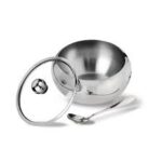 Сахарница современной формы подойдет для любого интерьера. За счет материала — нержавеющей стали, из которого изготовлена сахарница, она очень удобна, практична и долговечна. Материал - высококачественная нержавеющая сталь Материал ложки - высококачественная нержавеющая сталь Объем - 0,32 л Особенности можно мыть в посудомоечной машине